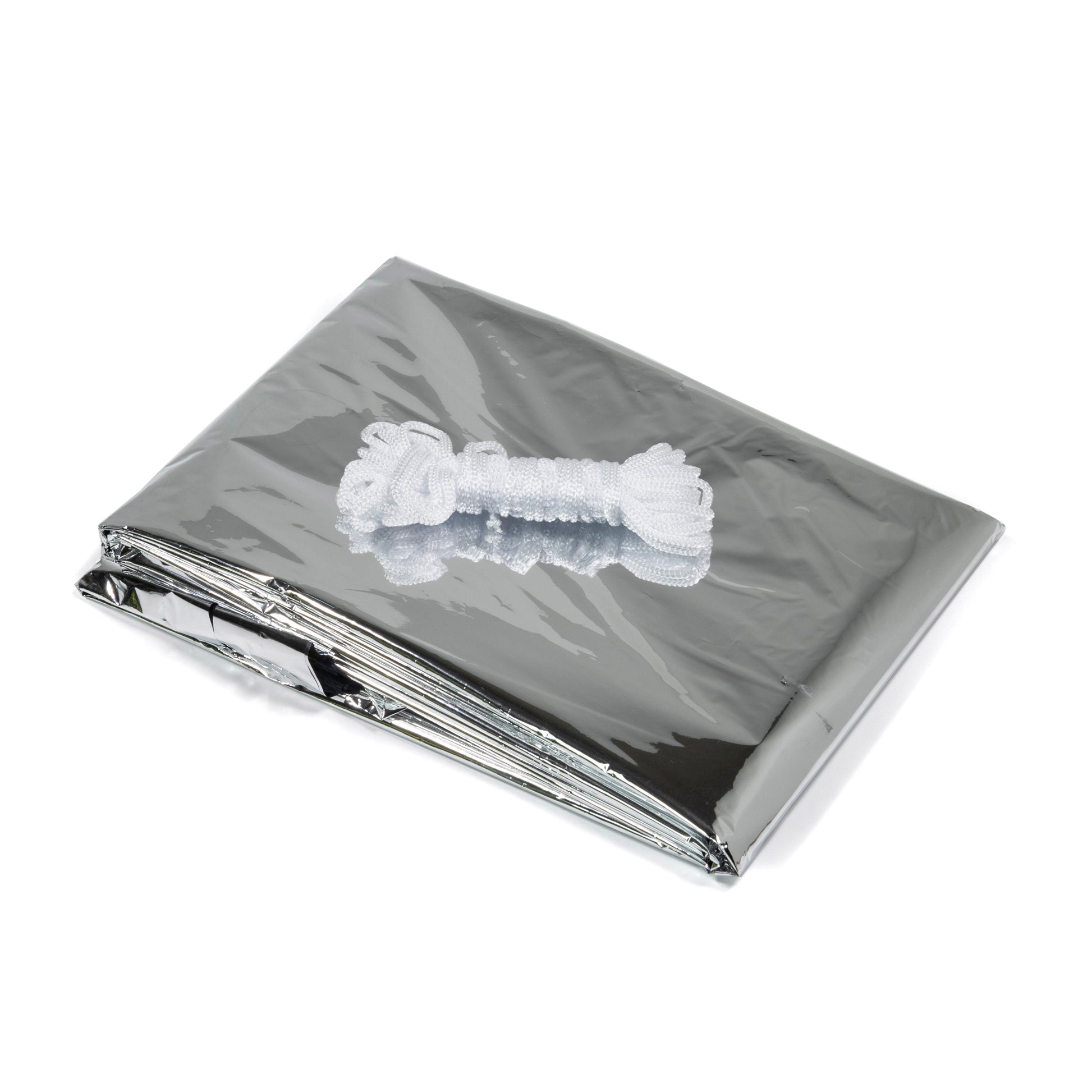 Constructed from durable reflective material, the shelter helps retain body heat while also providing a barrier from rain and wind. The reflective interior helps bounce heat back toward occupants, which can be especially important during cold or wet conditions in the outdoors. Emergency shelters like this are commonly carried in survival kits because they provide quick protection and insulation during unexpected situations.