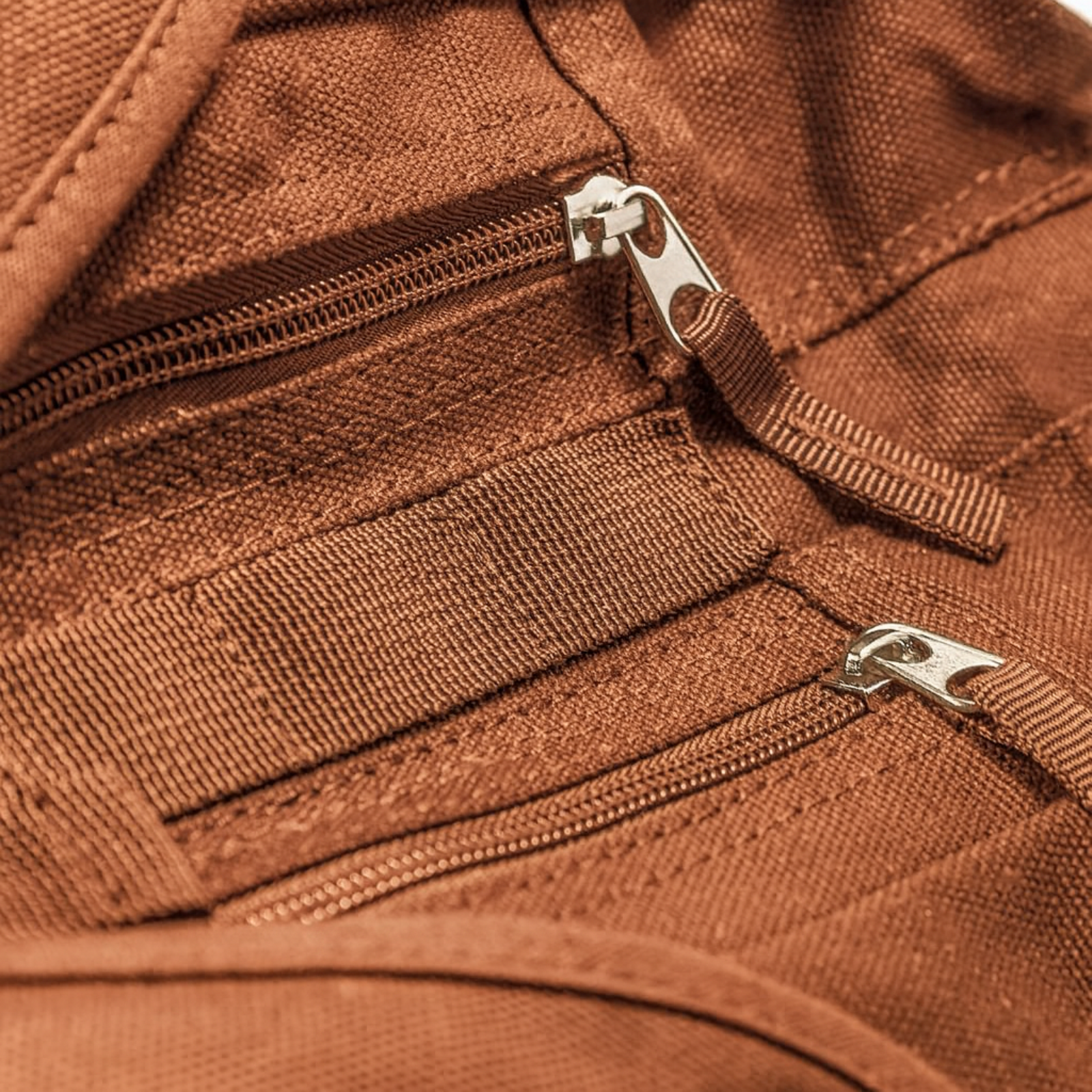 With 30 liters or 1830 cubic inches (volume) of packing space, the large central compartment of this rucksack can really hold it all. In addition to the huge central compartment, the rucksack features an interior draw cord compression closure, large top load lid closure, three exterior compartments and reinforced stitching throughout. Furthermore, all exterior side pockets feature both zipper and buckle closure, so you can rest assured your belongings will remain safe and secure. Lastly, adjustable carry straps provide comfort customization, as well as a top carry handle for easy maneuvering and lifting when needed. The canvas rucksack is made from 100% quality cotton, a natural, breathable and durable fiber that will perform better than other synthetic materials in the long run.
