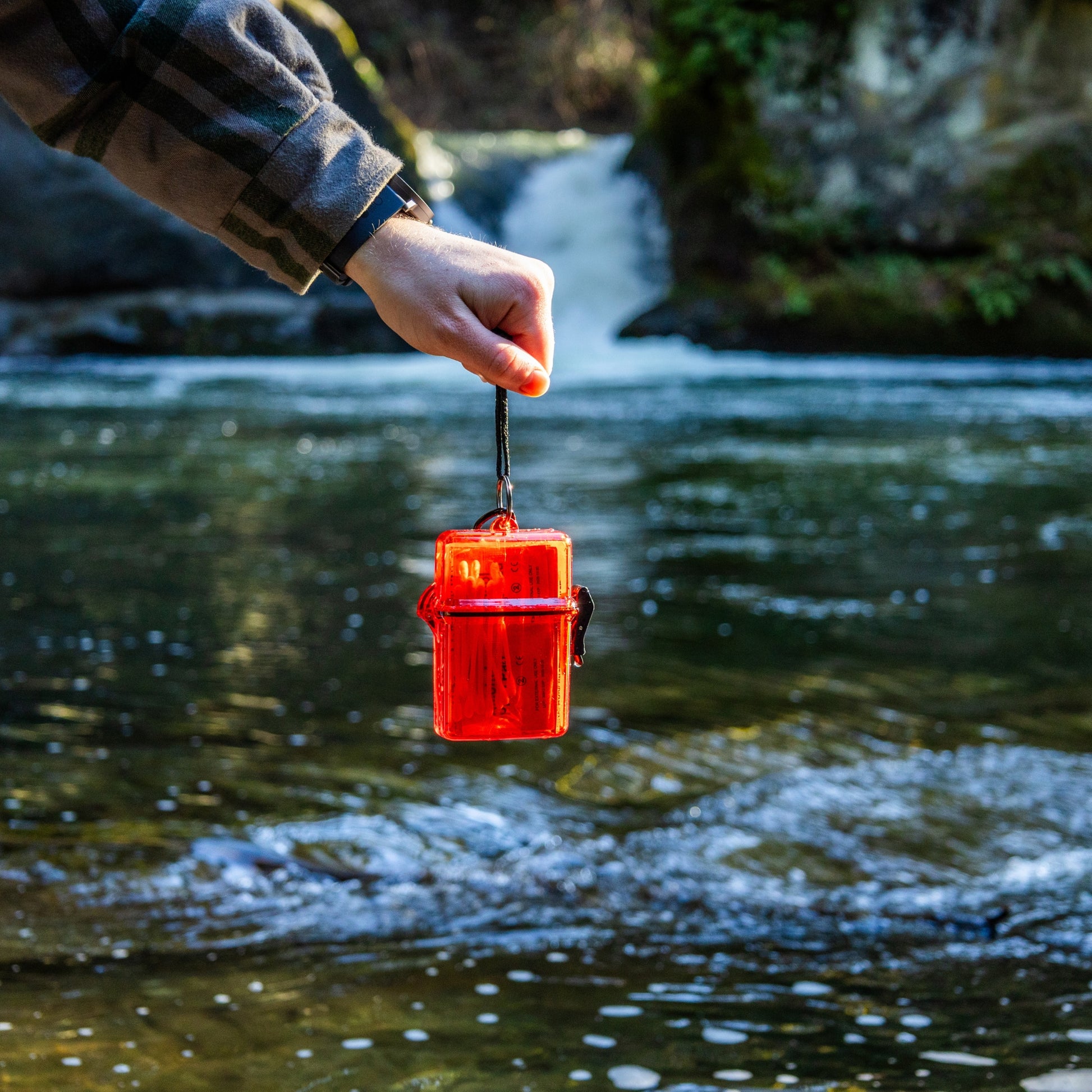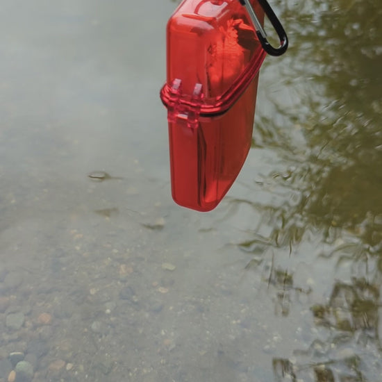 In addition to all of these first aid supplies, we've included a bright red waterproof plastic container that will protect the supplies in the event that the case becomes submerged or affected by inclement weather. The high-visibility red color will help you locate the kit in poor lighting conditions like in the trunk of a car or if an emergency happens at night. The entire kit measures just 4.25" x 4" x 1.25" and weighs only .2 pounds (3.2 ounces), making it a great size for keeping in your car, boat, bug out bag, camping gear or backpack while traveling. The case also comes with a carabiner and lanyard so you can hang it from your belt or bag.